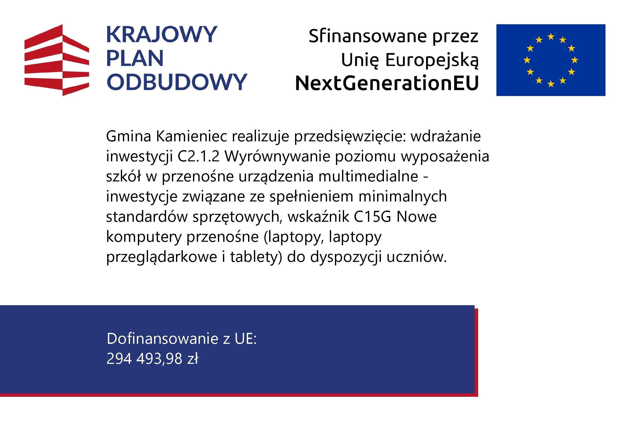 Zakup sprzętu w całości finansowany w ramach Krajowego Planu Odbudowy i Zwiększania Odporności (KPO).